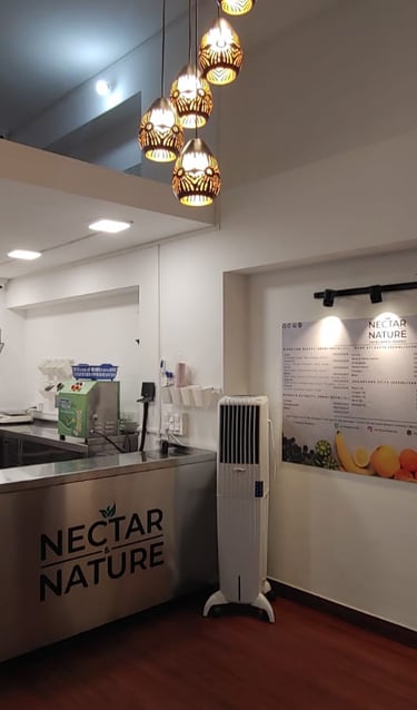 Meet Prashant and Deepika, whose labour of love is Nectar and Nature. Having just returned to their janmabhoomi and matrubhoomi from foreign shores, they wanted to dip their feet into the entrepreneurship pool. They wanted to create something that spoke to their foodie hearts and health oriented brain. Thus, Nectar and Nature was born - the delicious way to add health to your day! They started with a couple of machines cramped into their own kitchen, and buoyed by success, they have now opened their first store in Baner. Prashant is a chef at heart and self-confessed foodie, and has had many thousands of “samples” of the delicious offerings in the store prior to finalizing the menu! Deepika is a beautiful singer, who knows the importance of harmony, and has ensured that the juices, blends and milkshakes are made with ingredients that are harmonious with each other.